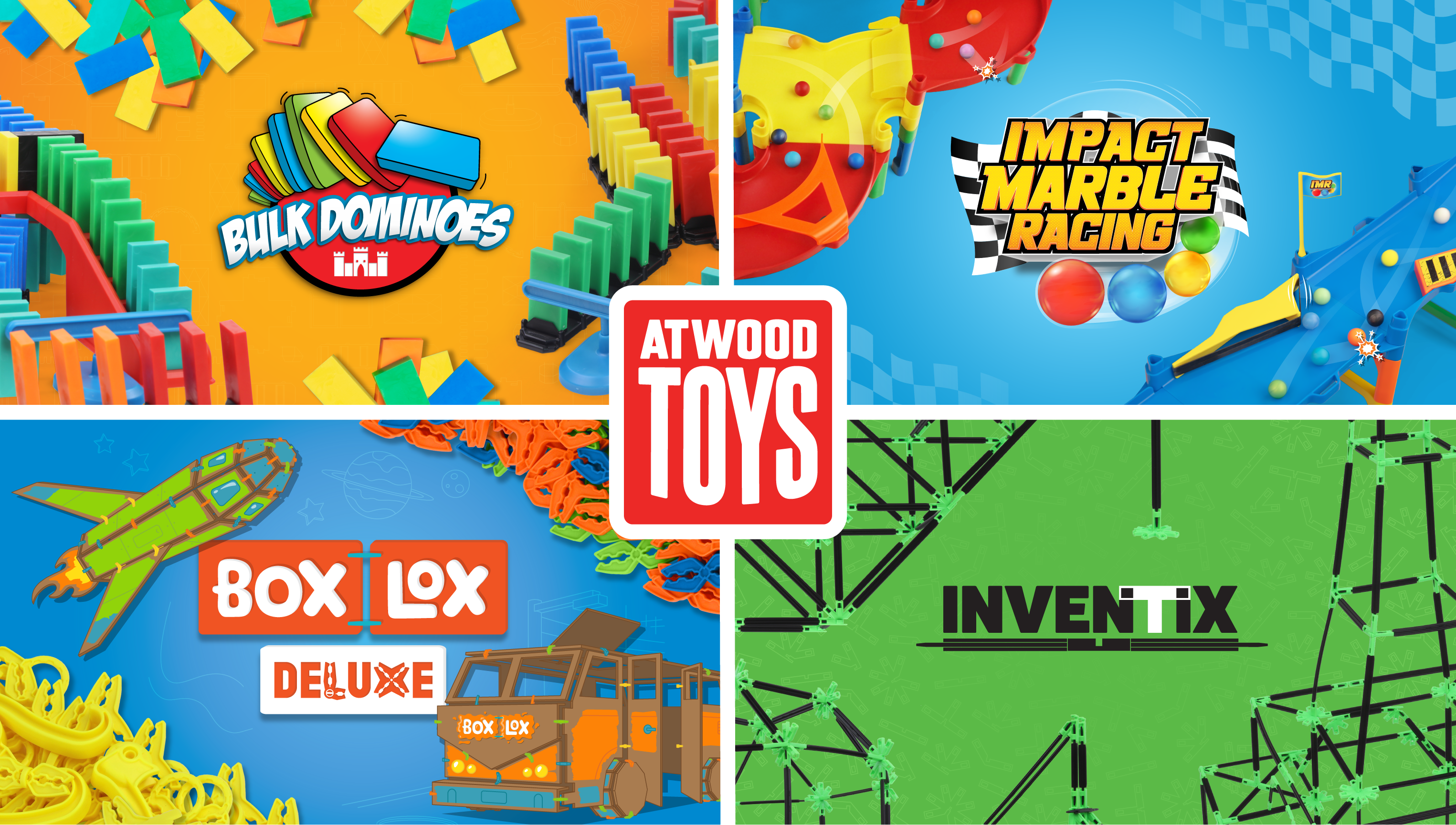 Today, Atwood Toys has expanded beyond dominoes to offer diverse range of building and construction toys, including Impact Marble Racing, Box Lox Card Clips, Blokix™, and Constructix™. Each product is designed to engage STEM/STEAM learning behaviors and provide systems of development, starting with basic builders to more complex building and construction toys.